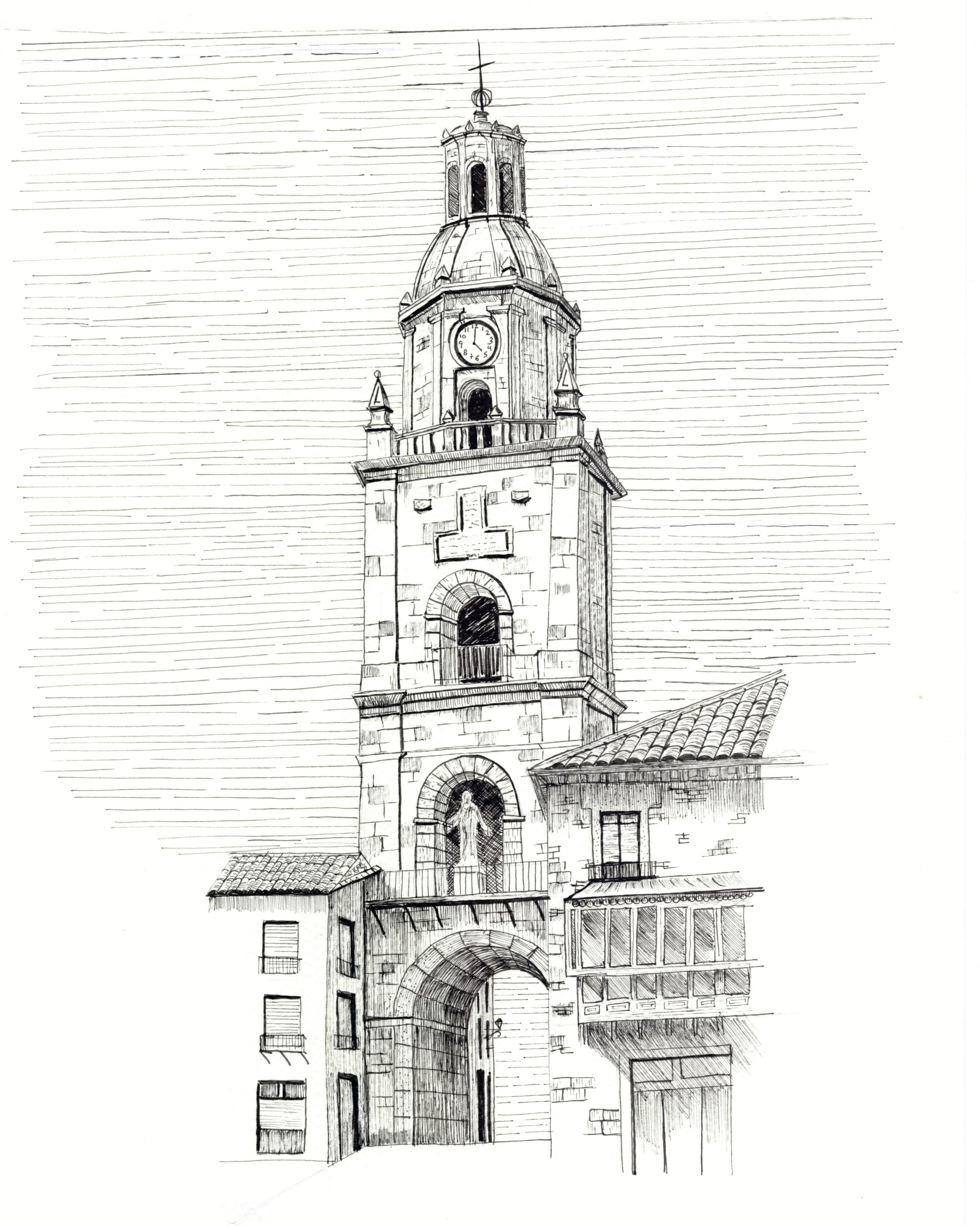 Dibujo a tinta del monumento situado en la ciudad de Toro (Zamora) llamado El Arco del Reloj.